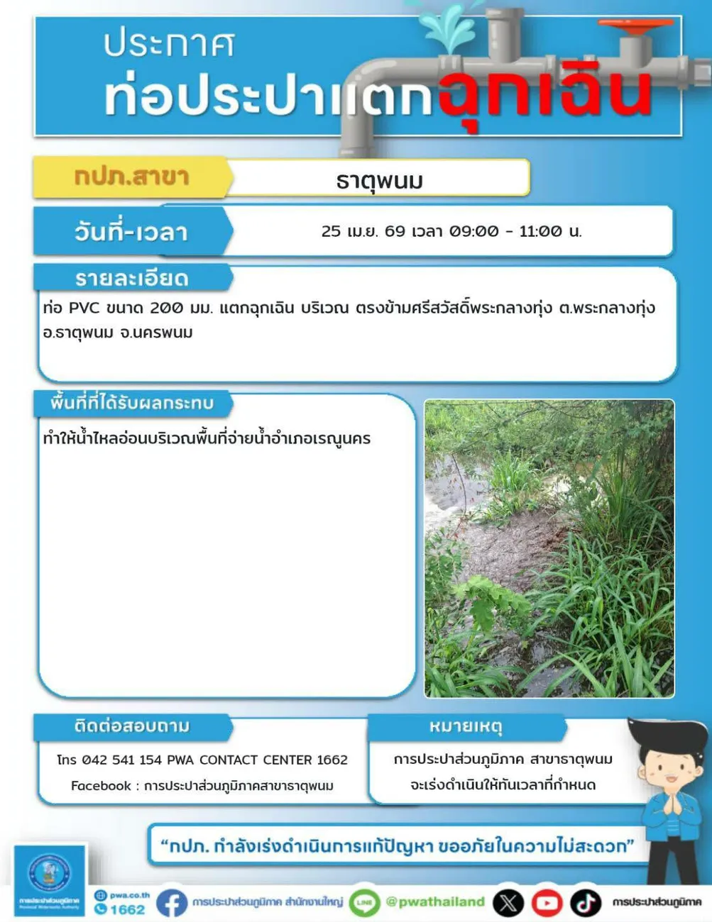 แจ้งการปิดถนน และจุดจอดรถ ในงานเทศกาลสงกรานต์ผู้ไทเรณูนคร ประจำปี 2569 โปรดเลี่ยงเส้นทางเดินรถ ในวันที่ 13 เมษายน 2569 ดังนี้ บริเวณห้าแยกเรณู ปิดการจราจร ตั้งแต่เวลา 08.00 น. - 24.00 น. ถนนเส้นทางขบวนแห่เทพีสงกรานต์ ประจำปี 2569 ปิดการจราจร ตั้งแต่เวลา 14.00 น. - 17.30 น. ขออภัยในความไม่สะดวก