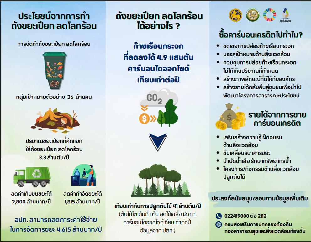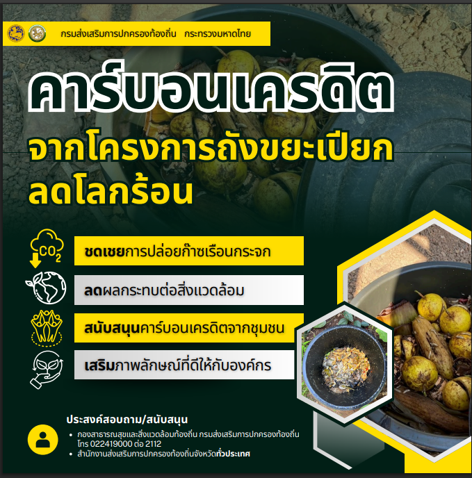 ภาพที่เกี่ยวข้อง ประชาสัมพันธ์ข้อมูลการรับรองปริมาณก๊าซเรือนกระจกจากโครงการถังขยะเปียก ลดโลกร้อนขององค์กรปกครองส่วนท้องถิ่น ประเทศไทย รอบที่ 4 ในพื้นที่ 76 จังหวัด