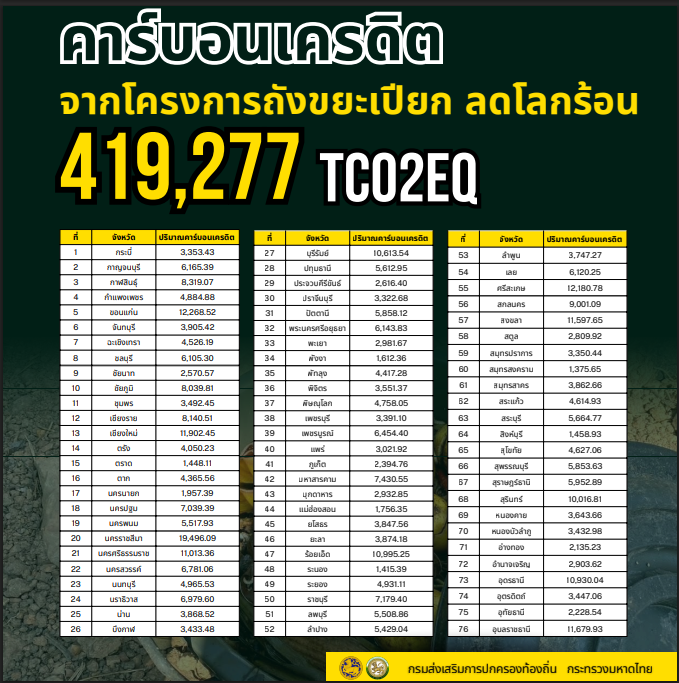 ประชาสัมพันธ์ข้อมูลการรับรองปริมาณก๊าซเรือนกระจกจากโครงการถังขยะเปียก ลดโลกร้อนขององค์กรปกครองส่วนท้องถิ่น ประเทศไทย รอบที่ 4 ในพื้นที่ 76 จังหวัด