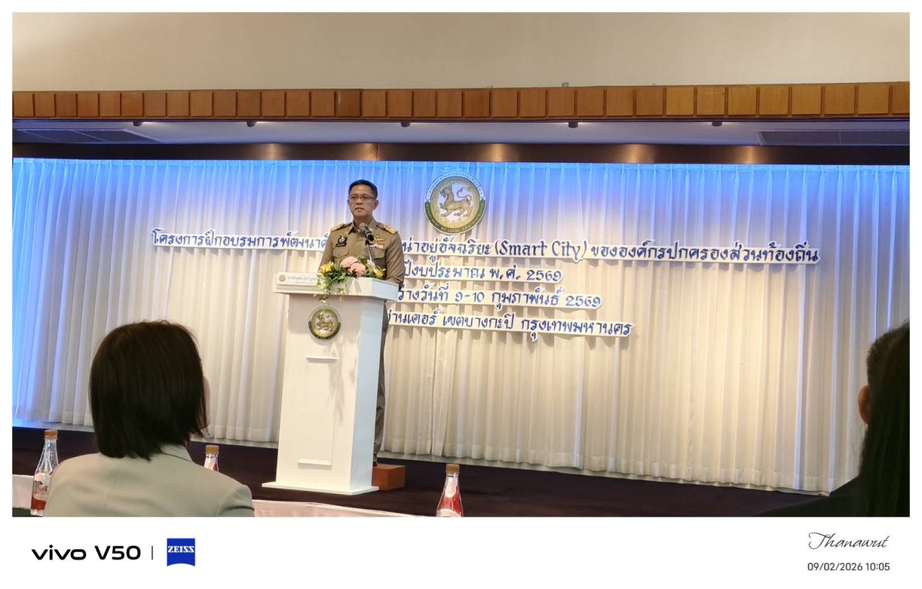 ภาพที่เกี่ยวข้อง วันจันทร์ที่ 9 กุมภาพันธ์ 2569 นางรัตนาภรณ์ คงพราหมณ์ นายกเทศมนตรีตำบลเรณูนคร มอบหมายให้ ว่าที่ร้อยเอกธนาวุฒิ ศรีอินทร์ รองปลัด เรักษาราชการแทนปลัดเทศบาล ร่วมโครงการฝึกอบรมการพัฒนาศักยภาพเมืองน่าอยู่อัจฉริยะ (Smart City) ขององค์กรปกครองส่วนท้องถิ่น ประจำปีงบประมาณ พ.ศ. 2569 ณ โรงแรมอเล็กซานเดอร์ เขตบางกะปิ กรุงเทพมหานคร รุ่นที่ 2 ระหว่างวันที่ 9-10 กุมภาพันธ์ 2569