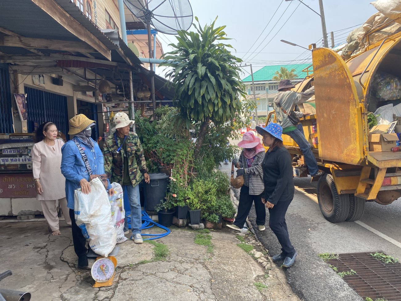 ภาพที่เกี่ยวข้อง วันพุธที่ 1 เมษายน 2569 นางรัตนาภรณ์ คงพราหมณ์ นายกเทศมนตรีตำบลเรณูนคร มอบหมายให้เจ้าหน้าที่กองสาธารณสุขและสิ่งแวดล้อมสำนักงาน เทศบาลตำบลเรณูนคร ลงพื้นที่เพื่อรับซื้อขยะรีไซเคิลตามโครงการณรงค์ลดปริมาณขยะอย่างมีส่วนร่วม ในพื้นที่ หมู่ 9 ตำบลเรณู อำเภอเรณูนคร จังหวัดนครพนม